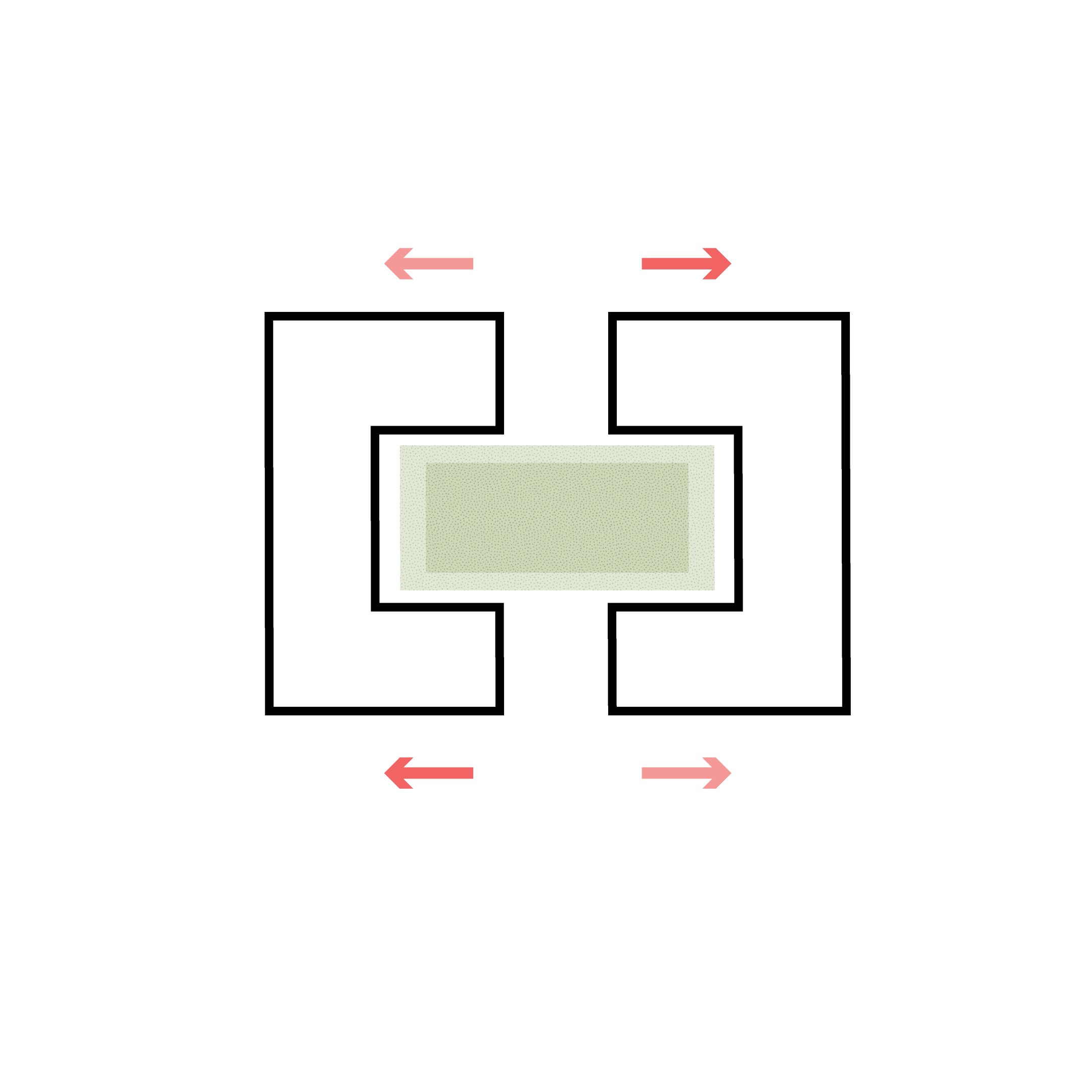 The basic unit of the design is the blocks divided into two “U” shaped masses that create a logical connection between the streets and at the same time form semi-private courtyards with carefully conceived greenery. These courtyards provide residents with spaces for relaxation, community activities and leisure, enhancing the quality of public life within the neighbourhood.